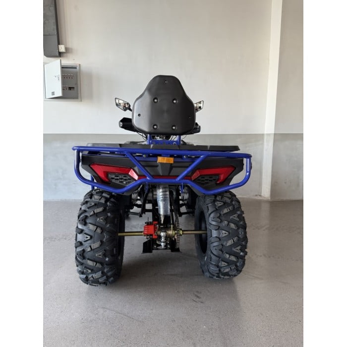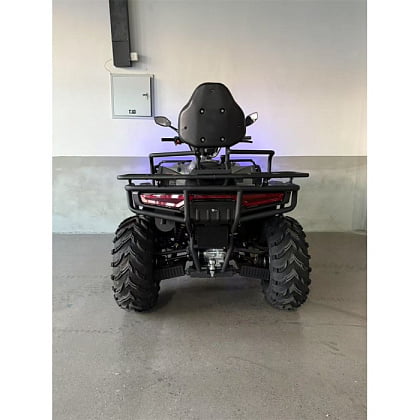 Максимальная скорость до 65 км/ч позволяет быстро преодолевать открытые участки пути, а крупные колеса диаметром 25" с внедорожным протектором гарантируют превосходное сцепление на грязи, песке и гравии. Независимая подвеска и амортизаторы на обеих осях сглаживают неровности дорожного покрытия, обеспечивая комфорт при движении по лесным тропам или каменистым дорогам. Надёжные гидравлические дисковые тормоза спереди и сзади позволяют безопасно тормозить даже на спуске, а лебёдка — это незаменимый помощник при преодолении сложных участков или в случае необходимости вытянуть застрявшую технику.