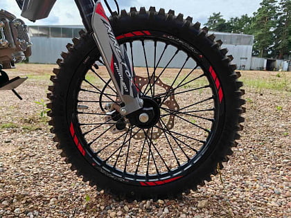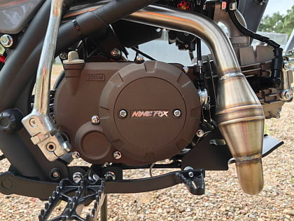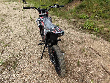 Легкие алюминиевые ступицы и обода из сплава 6061 обеспечивают прочность и долговечность конструкции. Резина размером 90/100-14 сзади и 70/100-17 спереди отлично сцепляется с грунтом и асфальтом. Выхлоп с поворотным бампером придает мотоциклу агрессивный внешний вид и насыщенный звук.