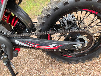 Обновленные тормозные диски с двухпоршневыми передним и однопоршневым задним тормозом обеспечивают уверенное торможение. Усиленная цепь 428 и звезда на 48 зубов гарантируют долговечность передачи мощности. Защита картера из толстого алюминия, боковые защиты рамы и рама в стиле раптор делают мотоцикл устойчивым к повреждениям при падениях.