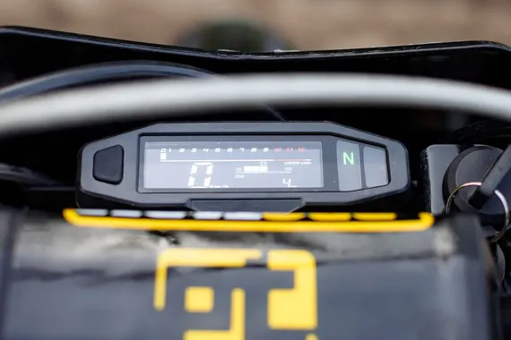 - Многофункциональная панель с индикаторами скорости, оборотов, состояния передачи и заряда батареи.