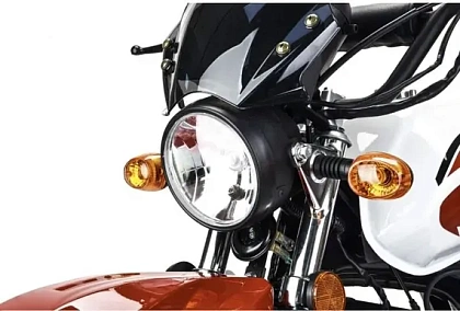 - Возможность установки защитных дуг, переднего багажника и дополнительных складывающихся дуг-подножек для пассажира делает этот мопед универсальным средством для перевозки грузов.
