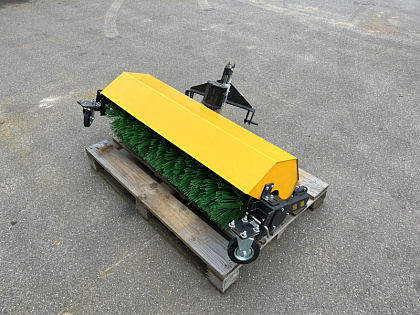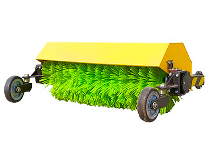 Щетка подключается к трактору через вал отбора мощности (ВОМ) и кронштейн, что гарантирует надежную передачу мощности и стабильную работу оборудования. Компактные размеры (длина — 69 см, ширина — 127 см, высота — 61,5 см) и вес около 135 кг позволяют легко маневрировать даже в ограниченных пространствах и на узких участках.