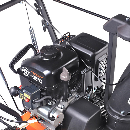 Снегоуборщик оснащен системой подогрева ручек.